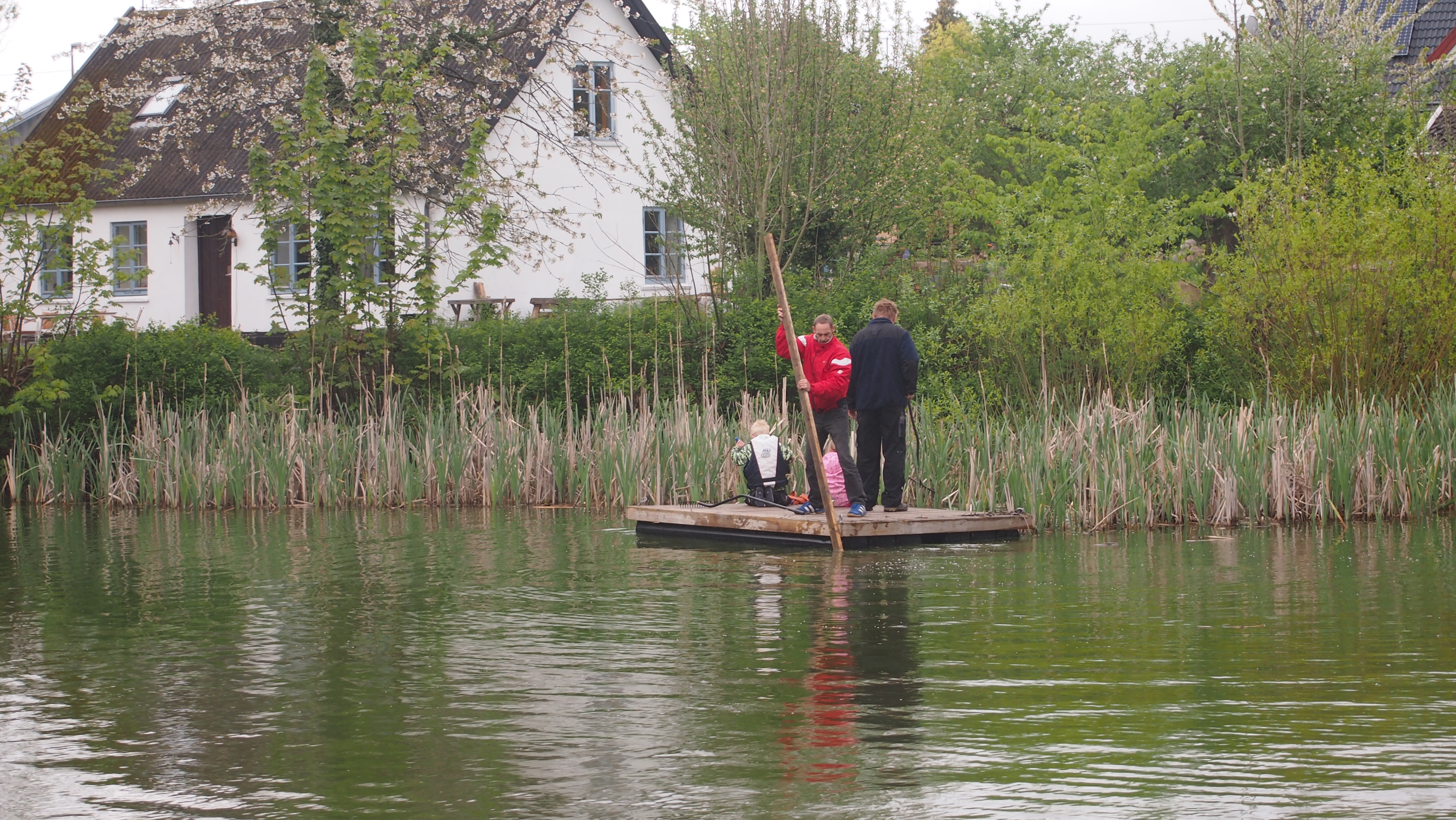 Ved landsbylaugets oprydning af gadekæret den 30. april kom en andefamilie i nød og måtte reddes ned fra højt træ.